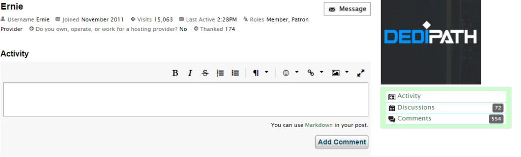 以前アーニーと個人的に話をしたことがありますが、彼はいつもとても知識が豊富で親切な人でした...しかし、彼が本当に DediPath を去ったとしたら、それは DediPath にとって大きな転換期となります。