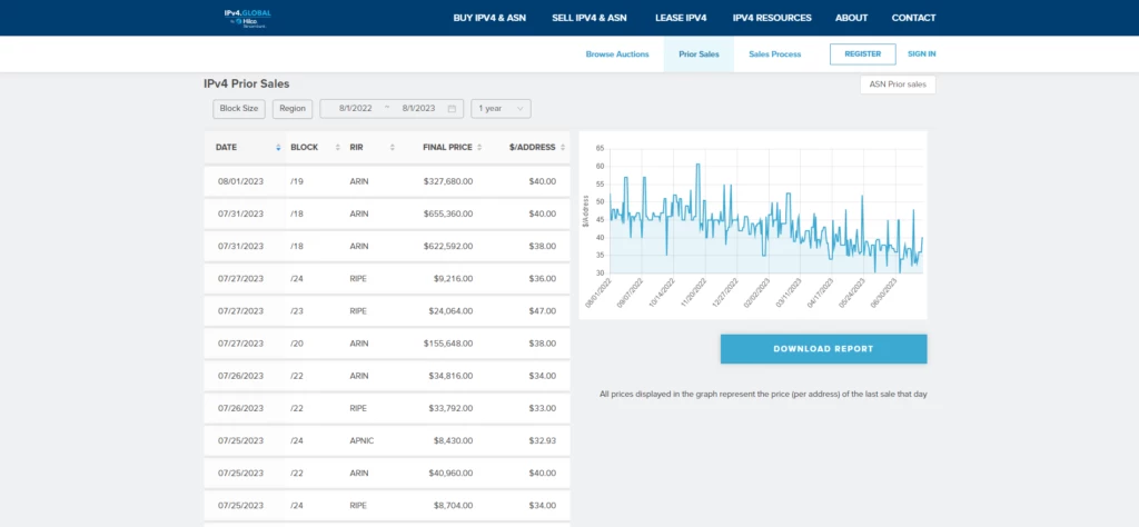 注目すべきは、過去 1 年間の IPv4 の価格は、独自の統計によれば実際に下がっているということです。