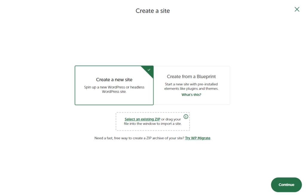そうでない場合(これが最も可能性の高いオプションだと思います)は、「新しいサイトを作成」をクリックするだけです。