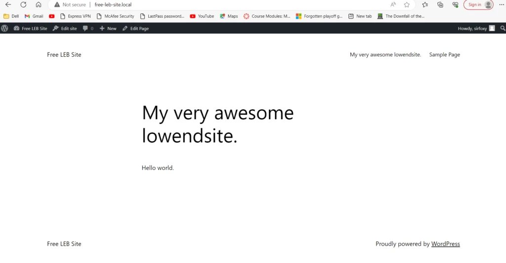 これで、独自のローカル WordPress インストールが完成しました。