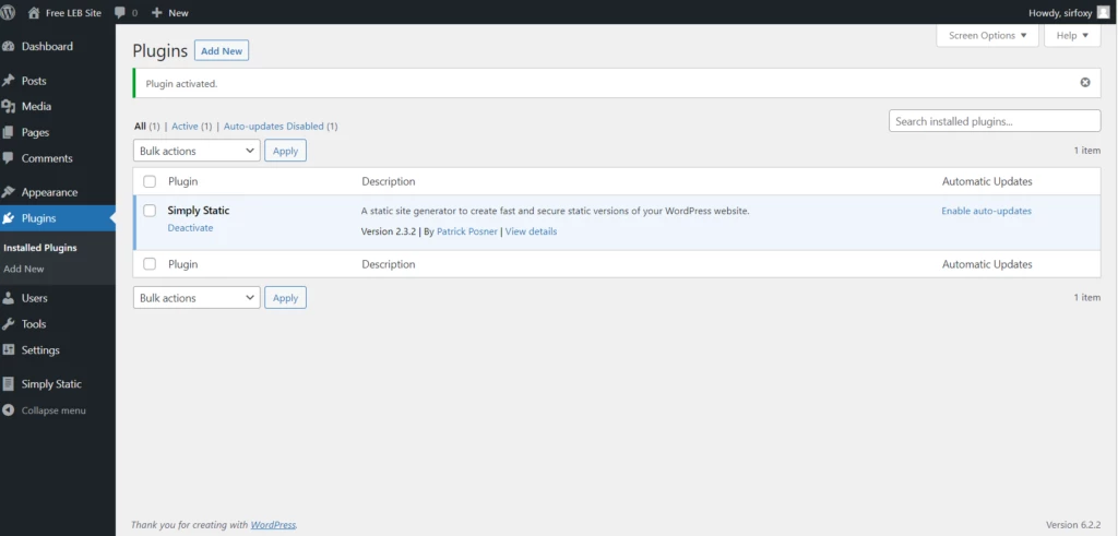 ローカルの WordPress サイトに Simply Static をダウンロードして有効化してください。