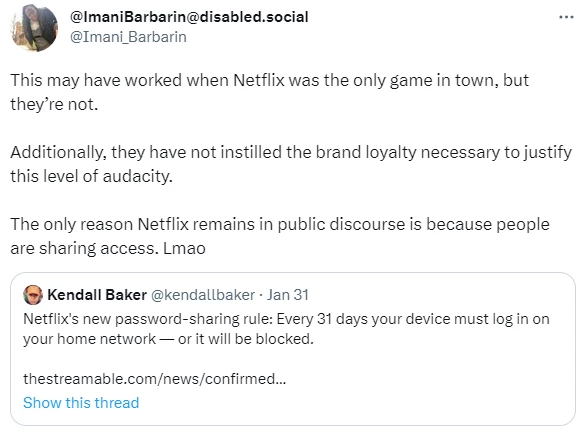 基本的な考え方は、ユーザーが友人や家族とアカウントを共有するのを阻止し、自宅住所とは異なる IP からログインするユーザーごとに月額 7.99 ドルの追加料金を請求することで利益を増やすというものでした。
