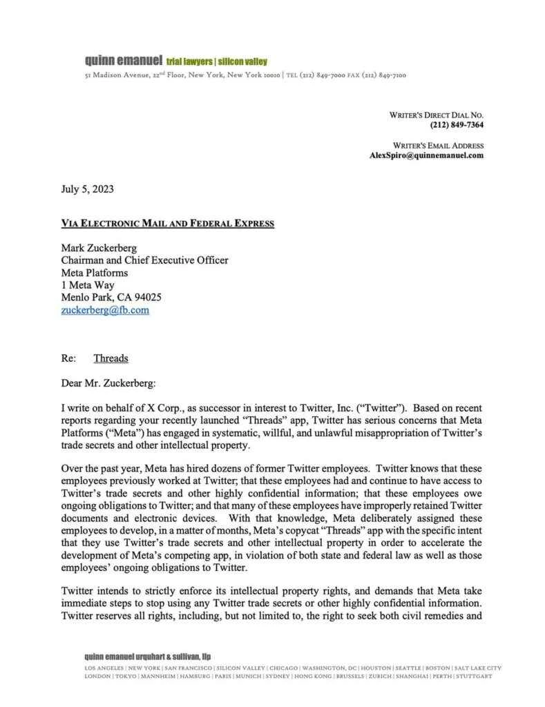 しかし、イーロン・マスクにとっては問題ではありませんでした。なぜなら、彼はTwitterにMetaへの訴訟予告を送らせたからです。
