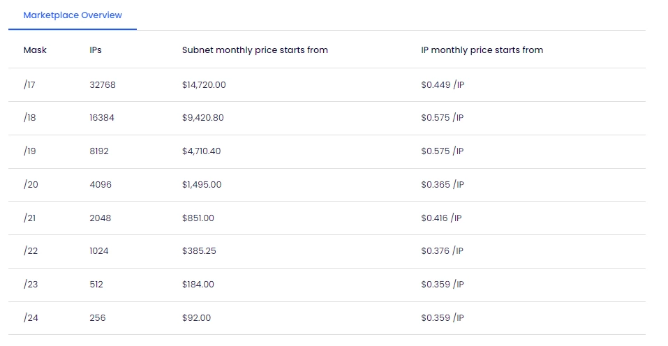 もちろん、ブロック サイズが大きくなるほど価格も上がりますが、フォーラムでよく見かけるのは、/24 のようなより小さなブロック サイズです。