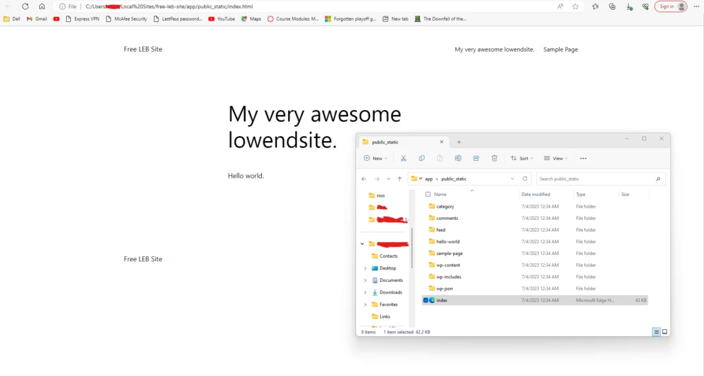 Windows を使用している場合は、C:/Users/YourUser/Local Sites/YourSite/app/public_static/ に出力されるはずです。そうでない場合は、エクスポート場所を見つけてください。