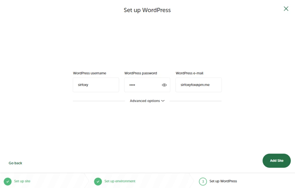 上記の Your-Site.local ドメインのままにしておくと、後でサイトをエクスポートするために使用するプラグインが失敗します。