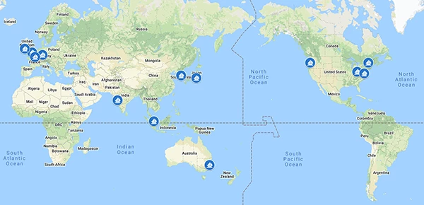 かなりグローバルな展開ですね。ProwHostのサーバー所在地を地図にしてみましたが、ご覧の通り、太陽が沈むことはありません。